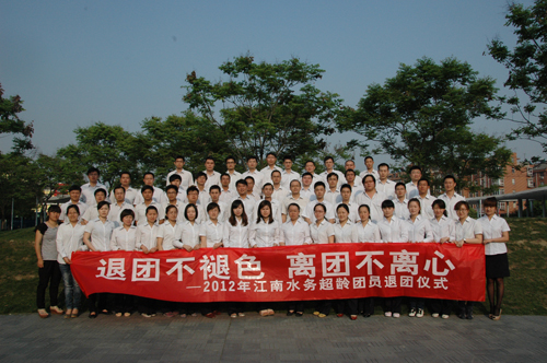“壮丽青春绣美景,广阔天地放英华。”在今年的五四青年节这一天,公司为超龄团员举行了主题为“退团不褪色、离团不离心”的2012年退团仪式,对于他们来说,这是一个特殊的日子,也是一个难忘的日子,更是一个走向成熟、继往开来的标志性日子。