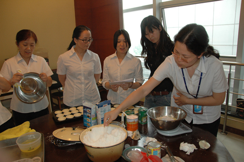 忙活了大半天,蛋挞终于出炉了,金黄松脆、香飘四溢的蛋挞,受到了同事们的热心青睐。