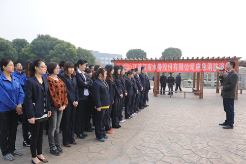 根据公司年度应急预案演练的计划, 11月19日,公司在肖山水厂组织开展了一次消防应急演练。总经理沙建新、副总经理高立、相关部门负责人及50多名员工参加演练活动。