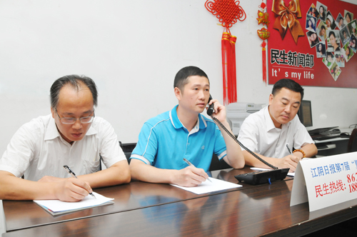 7月15日下午14:00,我公司副总经理曾武、客服中心主任吴敏、质量管理部经理孙正杰做客《江阴日报》夏令热线现场,热心为市民解疑释惑,并简要介绍了今夏供水高峰期的饮用水安全保障工作。