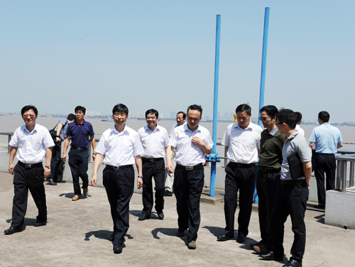 高温酷暑,深入一线。8月7日上午,江阴市委副书记、市长沈建,副市长封晓春一行来到公司调研,实地视察水厂运行状况,走访慰问一线水务员工,悉心听取夏季高峰安全保供工作汇报,详细了解水务企业发展情况,现场解决企业发展中的一些难题。市政府办、经信委、公用局、水利局、环保局、气象局领导,公司董事长龚国贤、总经理沙建新、常务副总经理王建林等陪同调研。