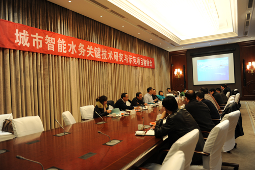 12月23日,公司历时3年精心组织实施的“城市智能水务关键技术研究与示范”项目,在江阴宾馆1号会议厅顺利通过国家住建部验收,由国务院资深参事王秉忱、东南大学教授吴浩汀、北京市政设计院总工方先金等7名专家组成的项目评审委员会在对项目给予充分肯定的同时,给出了较高的评价。会议由江苏省住建厅科技处王华处长主持,江阴市公用局、科技局、信息办等行业主管部门和公司领导龚国贤、沙建新、曾武及项目组成员参加验收会。