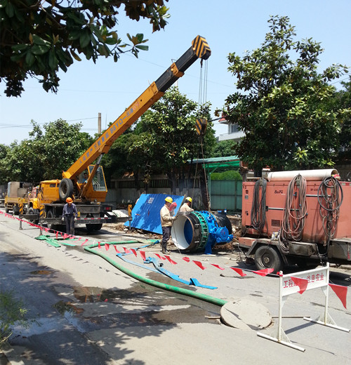 此次施工涉及范围广,为最大限度降低施工对供水和道路交通的影响,市政工程公司精心组织,严密部署,提前安排人员在公园路做好阀门开挖安全围挡工作,然后按照既定方案,于当天上午7点准时关闭总阀,在已挖开的总管上开放水口。但因公园路总管地势低、管线长,施工时内部自然压力较大,导致预先设定的泄压孔无法完全割开。市政公司主要负责人了解情况后,亲赴现场坐镇指挥,结合实际情况调整施工方案,迅速增派施工人员在暨阳山庄西侧DN1500支管上开口,以减小总管压力。经过紧张而有序地施工,下午4点30分顺利完工,比预期时间提早了一个半小时。