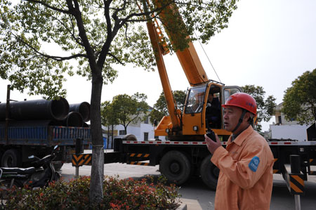 就在大家看得见曙光的时候,突然周松庆的手机又响起来了,又一个抢修任务接踵而来,险情就是命令,周队长顾不得抢修的劳累,再次协调人员,奔赴另一个抢修现场。周松庆领导着一个安装工程队,一个抢修队,有时抢修紧张,人手不够,安装队就临时改编成抢修队。