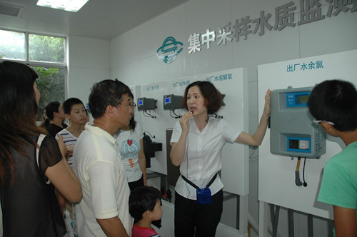 走进水厂,在解说员的带领下大家参观了取水口、机械搅拌混合池、折板絮凝反应池、平流沉淀池、滤池和集中采样点,详细了解了自来水的生产过程,从浑浊的长江原水到清澈洁净的自来水,参观人员对先进的生产设备和严谨的生产流程充满了好奇,现场互动热烈。体验了从源头到龙头自来水的来之不易,用户代表乔善亮感慨地说:“我感觉很震撼,生活中随手可得的自来水原来凝聚了供水人如此多的付出和艰辛。通过参观,真正了解了自来水不是自来的,在今后的生活中要更加节约用水,保护我们的水环境。”