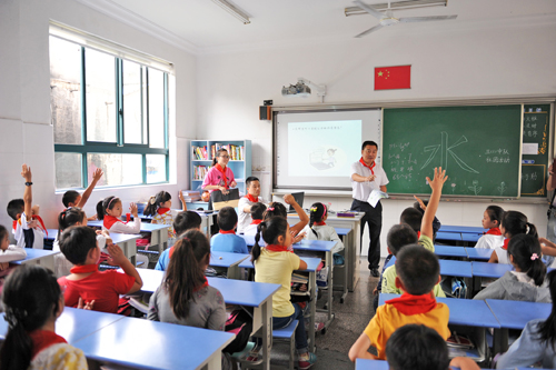 9月25日,市辅延小学三年级1班迎来了一批特殊的客人,只见客人拿出神奇的“道具”给学生们做了水PH值实验,随着几个轻微动作,试杯中的水一眨眼的工夫变了颜色,一会儿又变得清澈,学生们大呼神奇……,这是公司客服中心、澄西水厂、质量管理部工作人员走进校园,在给小学生们上生动的主题班课。
