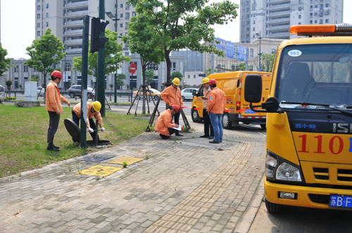 上午9点45分,报修电话响起:“位于澄江路隧道口北的通渡路绿化带内有大量自来水溢出。”抢修队接报后快速反应,人员、设备、车辆紧急出动。9点56分,抢修负责人、抢修一班、110联动抢修车相继赶到事发地点。经过现场初勘,确认为绿化带内DN800玻璃钢管爆管,由于爆漏情况较为严重,随即启动抢修应急预案。