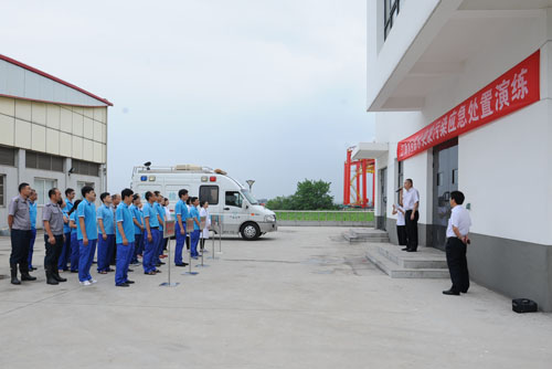 “活性炭投加组收到请回话!”“活性炭投加组薛华收到,请讲。”“根据取水口观察和水质化验结果,目前油渍污染程度仍在加剧,请立即按10公斤/千吨的比例投加活性炭。” “活性炭投加组明白,立即执行。” 6月24日,公司在肖山水厂开展原水突发污染应急处置实战演练。