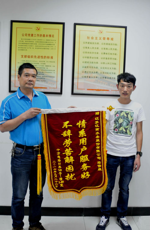市政公司抢修队收到十方庵路51弄149号用户送来锦旗,对公司专业的技术、敬业的态度、优质的服务表示感谢。近日,为防冻保暖,公司正对供水保温设施展开维修。抢修队提前与用户预约,并第一时间安排人员上门服务。维修过程中,发现该用户家中阀门老化锈死,维修人员主动帮其更换并检查家中其他用水设备,这一连串精细化服务赢得了用户的诚心点赞。