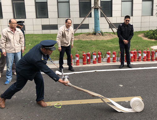 随后,着重介绍了各类灭火器的使用方法。大家按秩序进行抛水带、接水洗枪和消防灭火操作,熟练掌握操作技巧,提高了每位参训人员的应急处置能力。
