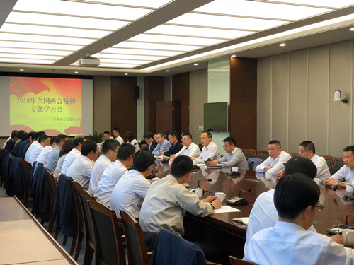 4月10日,公司党委中心组召开专题学习(扩大)会,学习贯彻党的十九届三中全会精神和全国两会精神,党委书记、董事长龚国贤主持会议,公司党委委员、各党支部书记、各部门负责人参加专题学习会。