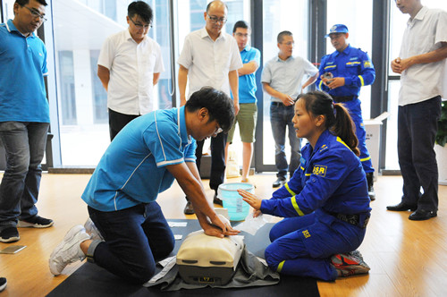 “意外伤害无处不在,唯有掌握更多的急救知识和技能,遇到意外伤害时,大家的生命和健康才能得到尽可能的保护。”培训课上,宋队长通过图文结合的方式介绍了应急救护的重要性,就心肺复苏的操作要领及注意事项进行了详细讲解。