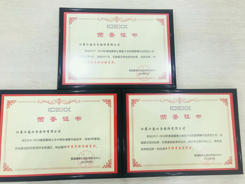 近年来,水质检测中心在爱德士公司组织的水中微生物能力验证及隐孢子虫和贾第鞭毛虫质控计划中操作规范、质控有效、数据精准,各项成绩优异。此次荣誉的获得,充分体现了水质检测中心在微生物检测领域达到了国际认可的较高水平。今后,公司将以此为新的起点,进一步规范实验室标准化管理,加强检测技术能力建设,为江阴安全优质供水提供坚实保障。