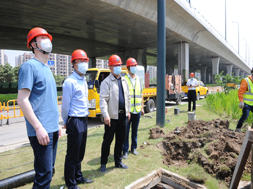 5月7日上午,公司党委书记、董事长华锋,总经理池永,副总经理曾武深入夏港街道健康驿站配套供水管网建设工地,察看当前工程进度,指导疫情防控工作。